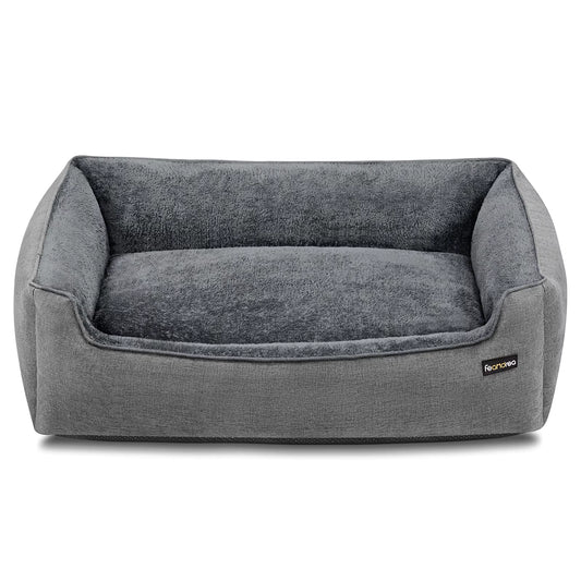 Linen-Style Dog Bed Sofa with Raised Edges, Non-Slip Base, Removable and Washable Cover, 90 x 75 x 25 cm