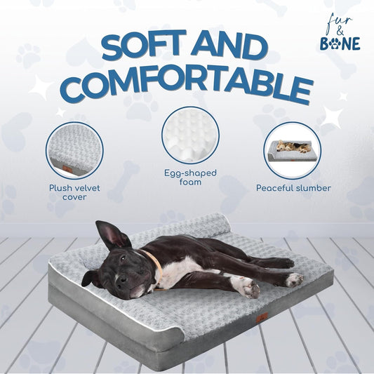 Fur & Bone Orthopedic Large Dog Bed (88 x 64 x 20 cm) with Soft Cushion